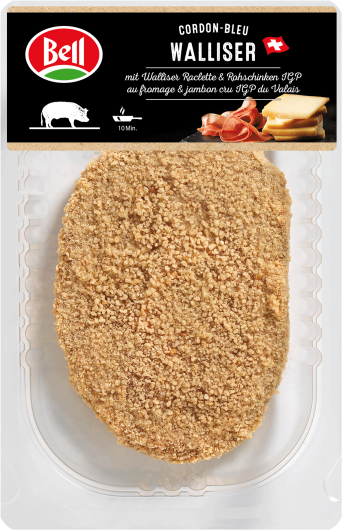 Saftiges Cordon-bleu aus bestem Schweinefleisch. Herzhaft gefüllt mit zart-schmelzendem Walliser Raclette-Käse AOP und würzigem Rohschinken IGP. Für ein perfektes Gelingen, geduldig bei mittlerer Hitze braten.