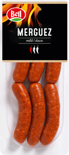Beliebt wie eh und je – die kräftigen Merguez von Bell mit gekochtem Rind- und Lammfleisch.