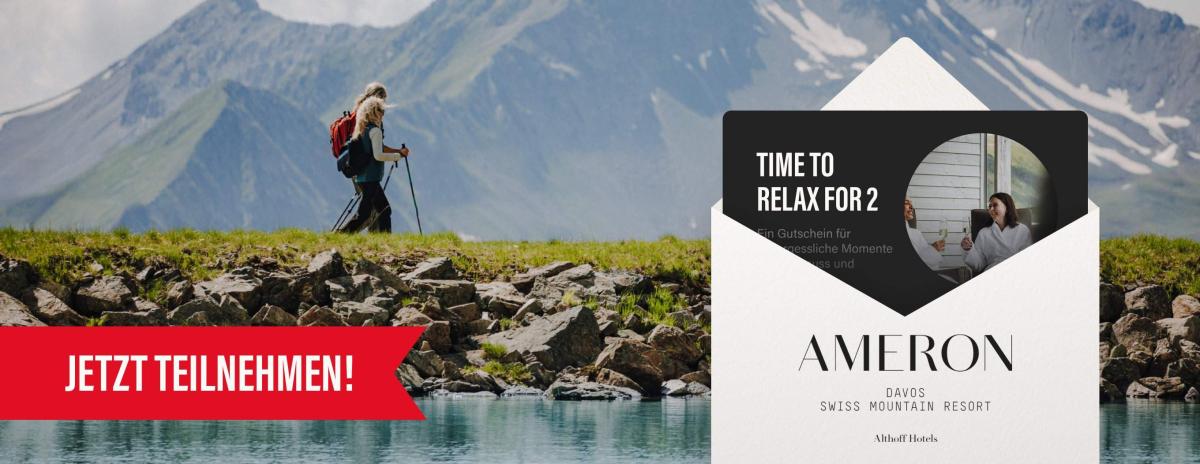 Wir verlosen 3x einen Hotelaufenthalt im AMERON Davos Swiss Mountain Resort – Time to Relax for 2! Perfekt, um nach einer ausgedehnten Wanderung neue Energie zu tanken und dich rundum verwöhnen zu lassen.
