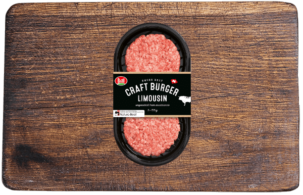 Bestes Schweizer Rindfleisch für die besten Burger. Unser Fleisch kommt von der Limousin-Rasse, die ihren Ursprung in Zentral-Frankreich hat. Die Mutterkuhhaltung und saftiges Gras garantieren erstklassige Qualität. Grob gewolft und ungewürzt für einen ehrlichen Beef-Geschmack!