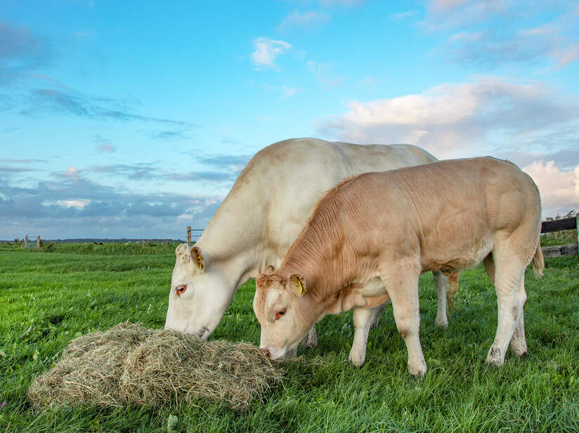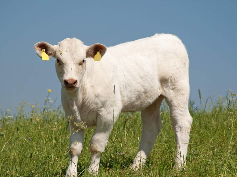 La race charolaise : Cette race est également originaire de France, précisément de la région de Charolles en Bourgogne. Ces veaux à robe claire uniforme sont presque exclusivement élevés pour la viande.