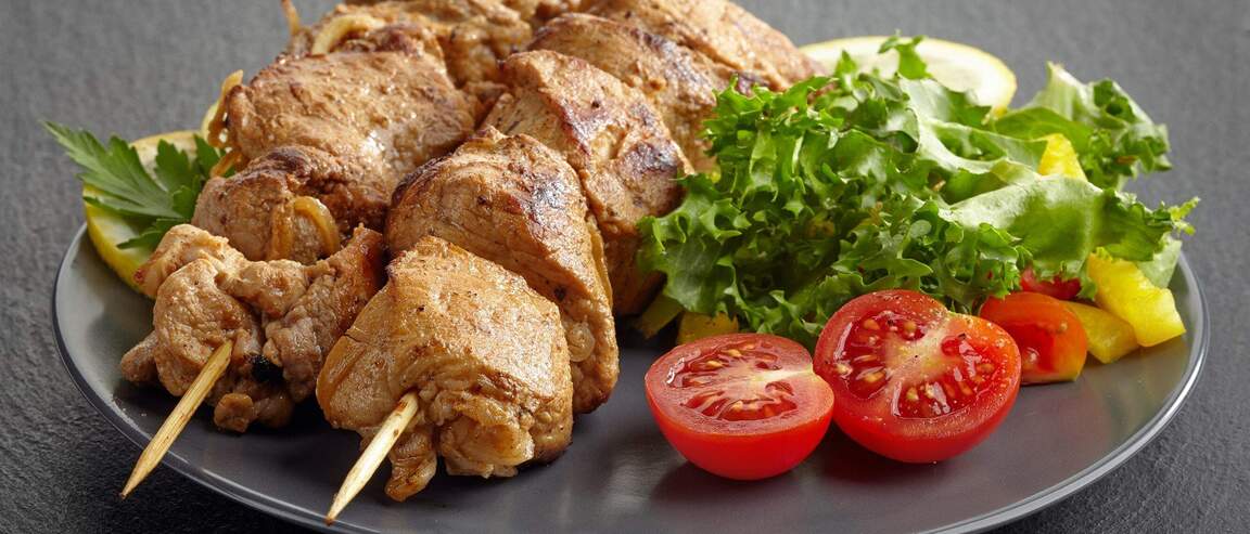 On utilisera des morceaux de bœuf, de veau, de porc, d’agneau ou de poulet (poitrine ou cuisse), pauvres en tissu conjonctif, coupés en dés ou en rectangles. On peut également y ajouter des tranches de lard à griller ou des petites saucisses (chipolatas). La viande pour les brochettes est généralement marinée.