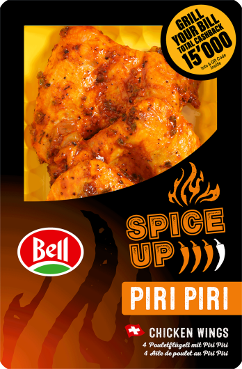 viande de poulet 91% (Suisse), huiles végétales (colza, colza totalement hydrogénée), sel de cuisine, jalapeño 0,7%, épices, vinaigre de table, zeste de citron, extrait de paprika.