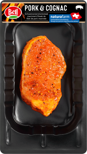 Un juteux filet de la meilleure viande de porc suisse. En marinade aromatique au cognac. Idéal à préparer sur le gril ou à la poêle. Astuce : laisser reposer quelques minutes au chaud après la cuisson pour qu'il soit encore plus juteux.