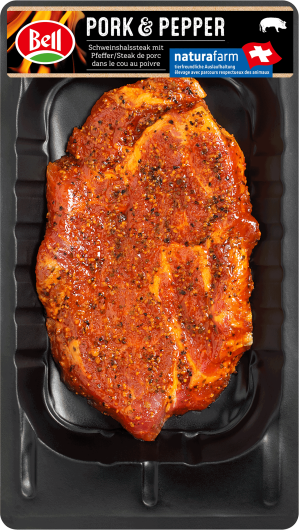 Un steak au poivre juteux produit avec la meilleure viande de porc suisse de qualité Naturafarm. Marinade savoureuse et très aromatique. Idéal à préparer sur le gril ou à la poêle. Astuce : Après la cuisson, laisser reposer quelques minutes au chaud pour qu'il soit encore plus juteux.