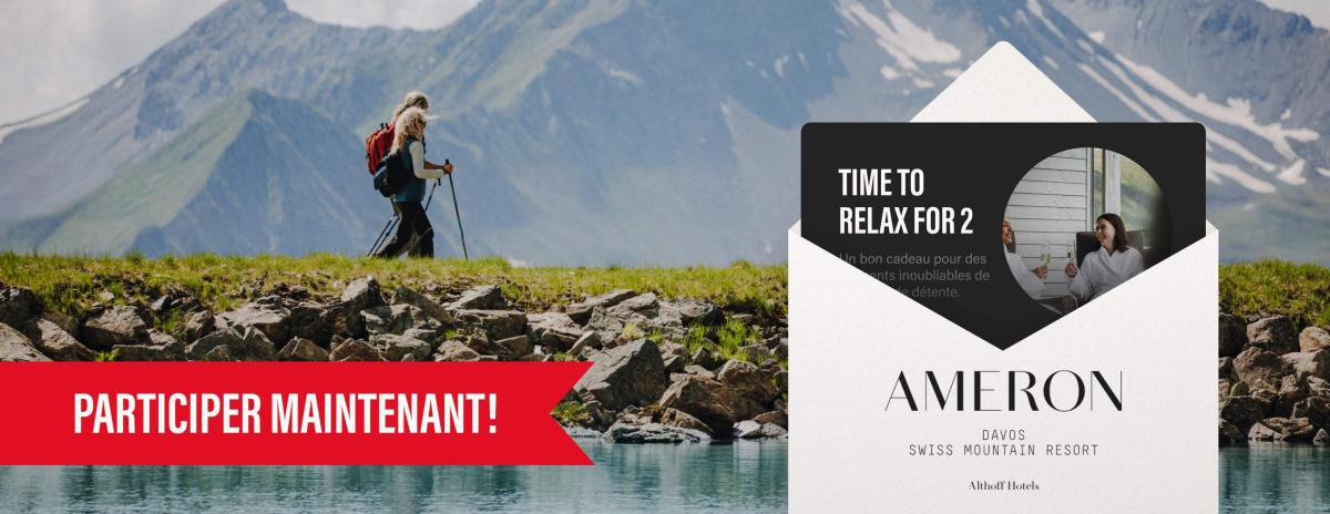On fait gagner 3x un séjour à l'hôtel AMERON Davos Swiss Mountain Resort – Time to Relax pour 2! Parfait pour recharger tes batteries après une longue randonnée et te laisser dorloter de la tête aux pieds.
