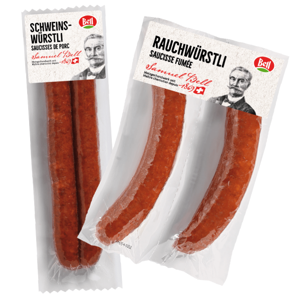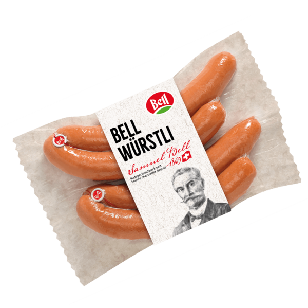 Depuis qu’elle fut distribuée pour lapremière fois le 10 mars 1924 lors du « Morgestraich » qui marquaitl’ouverture du carnaval de Bâle, la petite saucisse à la consistance croquante fait partie des incontournables de la maison Bell. De la viande de porc et de bœuf, ainsi qu’un mélange d’épices dont le secret est bien gardé, en font un véritable régal qui se passe aisément de phosphates et d’exhausteurs de goût. Dégustée froide ou réchauffée au bain-marie, la petite saucisse de Bell connaît un succès qui ne s’est jamais démenti.